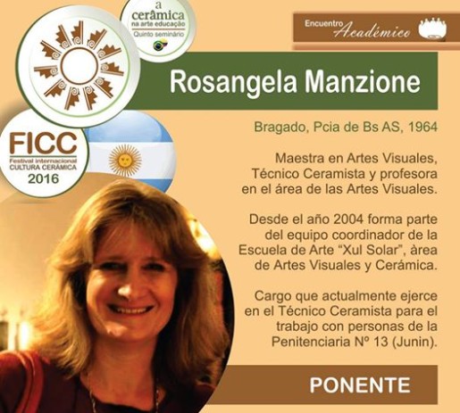 La Profesora Rosángela Manzione participó de una ponencia y proyección de un video institucional referido al proyecto "La Educación de la Cerámica en Contextos de Encierro", en el eje temático "La Cerámica en la Transformación del Individuo", el cual fue seleccionado entre numerosos proyectos presentados de latinoamérica.